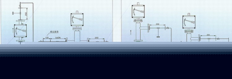 轉子流量計應垂直安裝,流量計中心線與鉛垂線的夾角不超過5°。在累計的上游須保證五倍公稱通徑的入口直管段,下游保證250mm出口直管段。如果介質中含有固定雜質,應在流量計上游加裝過濾器,如果介質中含有鐵磁性物質,應在流量計的上游安裝磁過濾器。為了便于維護和清洗且不影響,建議安裝旁通管路。