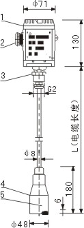 投入式 液位變送器 結構類型 AK-LC纜式液位變送器 AK-LR桿式液位變送器 AK-LD直裝式液位變送器 AK-LC 外形尺寸 AK-LC纜式液位變送器 (普通形式連接) 1、變送器外殼 2、信號線纜接頭 3、傳感器電