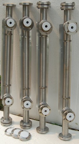 側裝式內襯型磁翻板液位計(PTFE)適用于腐蝕性介質且工作溫度又較高場合的液位測量,采用先進的不銹鋼內襯聚四氟乙烯拉伸翻邊新工藝,結構可靠,使用壽命長。是氫氟酸等強腐蝕性介質液位測量的選擇。側裝式內襯型磁翻板液位計(PP)適用于鹽酸、稀硫酸等無機類腐蝕性液體的測量,由于采用進口高強度可與金屬接近,尤其是PPR 獨特的保溫性,合該產品適用于室外水箱液位測量,遇冬季內部不會結冰.但不如襯PTFE型耐溫及耐壓性能好,溫度及壓力較低時選用此產品性價比較高。用戶可根據工程需要,配合遠傳變送器使用,可實現就地數字顯示,以及輸出4~20mA的標準遠傳電信號,以配合記錄儀表,或工業過程控制的需要。也可以配合磁性控制開關或接近開關等使用,對液位監控報警或對進液出液設備進行控制。
