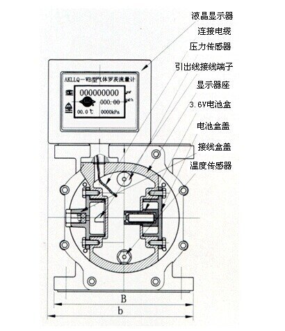 的AK-LLQ氣體羅茨流量計是一種測量封閉管道中氣體介質流量的速度式儀表、適用于天然氣及其他工業領域中的氣體量測量。由于其體積小、測量精度高、重復性好、特別適用于餐飲/賓館/企業天然氣結算計量。在它的計數器上顯示的是現場管道當中的、工作溫度和工作壓力下流過的氣體的體積量,即修正流量,單位nm3.也可切換工況流量,單位m3。儀表內部關鍵部件(如容積式轉子都是采用德國進口的、采用國際知名品牌元器件、儀表整體設計制造均采用國際技術、因此保證該儀表在任何現場工況條件下都可做出計量。