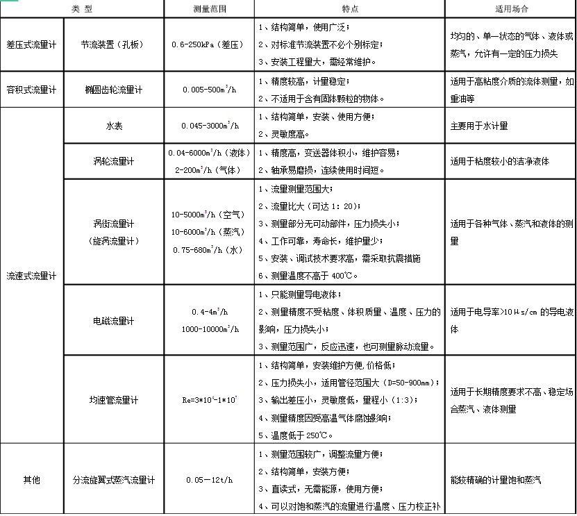 從上述表中,我們可以看出,適用于蒸汽流量測量的只有4種,即節流裝置(孔板)、渦街流量計(旋渦流量計)、均速管流量計、分流旋翼式蒸汽流量計。?